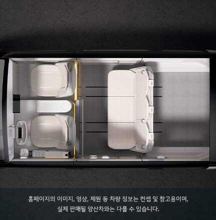 GMPS 플랫폼 덕분에 내부 공간을 원하는 대로 커스터마이징 할 수 있으며, 적재함을 넣거나, 시트를 추가하는 등 다양한 활용이 가능합니다.
