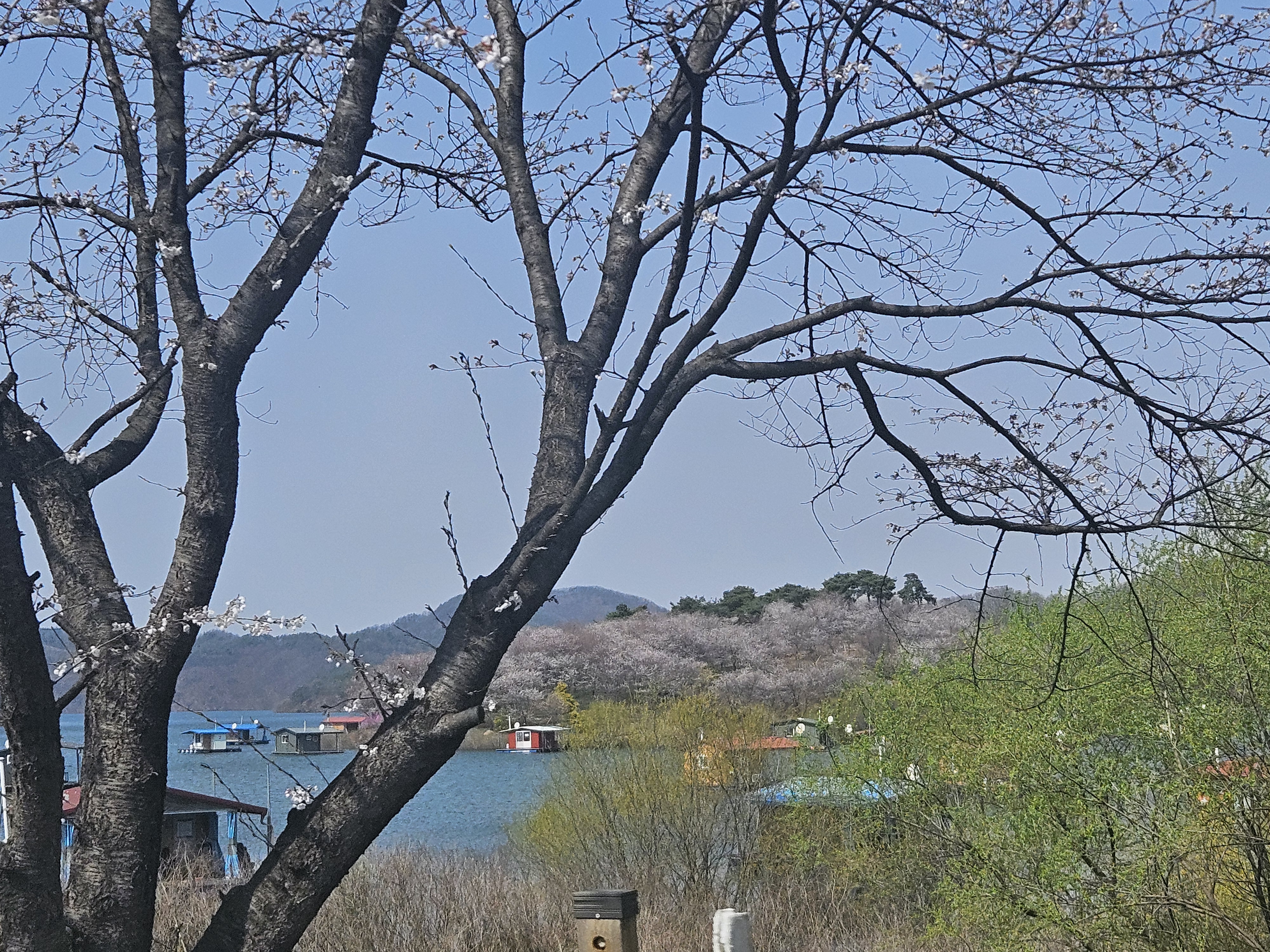 벚꽃이 피지 않았는데 저 멀리 보이는 벚꽃섬은 이번주